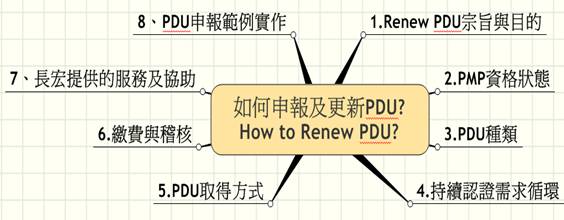 PDU說明會,一來幫助企業PMP可以獲得正確的申報PDU資訊,二來說明長宏提供的免付費服務資源。因此,只要有窗口單位召集達30位PMP報名,便可申請此企業Renew