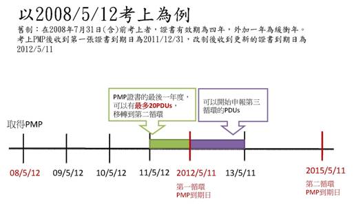 | 五、新、舊版PMP證書有效區間:2008/7/31為界線 |